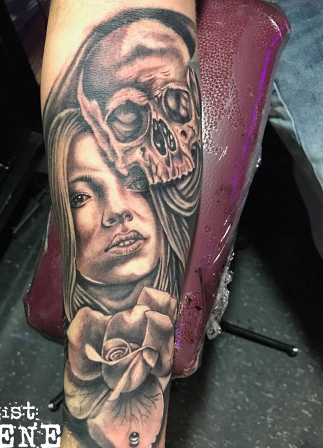 With over two decades of experience in the tattoo industry,Reme has established himself as a master of black and gray tattooing. Since beginning his career in the early 2000s, he has dedicated his craft to perfecting the subtle gradations, depth, and photorealistic detail that define exceptional black and gray work. His expertise spans a wide range of styles within the black and gray spectrum—from bold, traditional designs to intricate portrait work and detailed realism. Each piece is approached with meticulous attention to shading, composition, and the unique story behind every client's vision. After 20+ years of honing his technique and building lasting relationships with clients, Rene continues to push the boundaries of what's possible in monochromatic tattoo art. His work speaks to a commitment to quality, precision, and the timeless elegance of black and gray tattooing.
